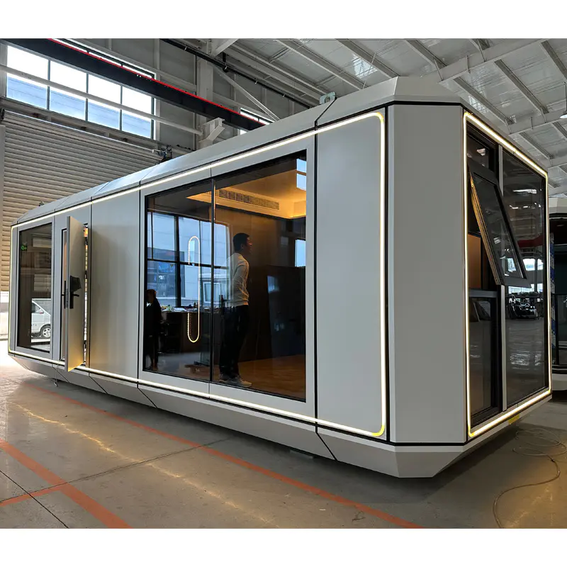 Rumah kapsul ini diperbuat daripada tiub persegi keluli tergalvani, memastikan perlindungan alam sekitar dan jejak karbon yang rendah. Ia juga boleh dikitar semula, menjadikannya pilihan yang mampan untuk pengguna.